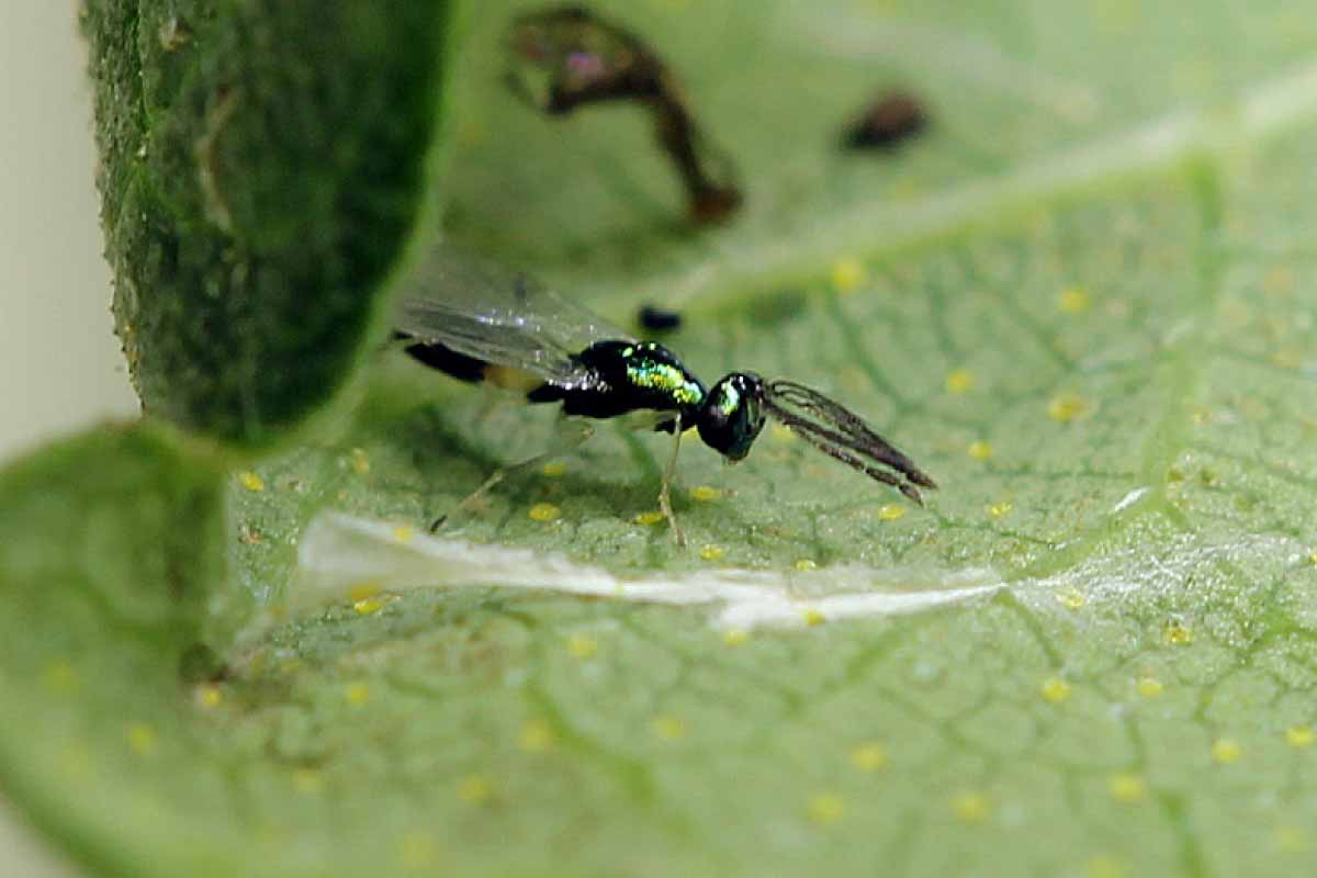 Parazitoidi se soustřeďují především na větší housenky ve stočených listech, jeden druh parazituje housenky v mině. Podle místa vývoje larvy převažují ektoparazitoidi - larva je na povrchu housenky, kterou samice nejdříve ochromí bodnutím kladélka a na ni nebo vedle ní vyklade vajíčko. Larva postupně vysává housenku, až z ní zbude jen seschlá pokožka s hlavou. Tímto způsobem se vyvíjejí všechny druhy dosud zjištěných chalcidek, naopak larvy lumků a lumčíků žijí uvnitř těla housenky (na první pohled není poznat, že je housenka parazitovaná) a dospělci se líhnou v závislosti na druhu z larvy nebo kukly vzpřímenky. Parazitace dosahovala v letošním roce většinou 50–80 %, na některých lokalitách byla až 100%.