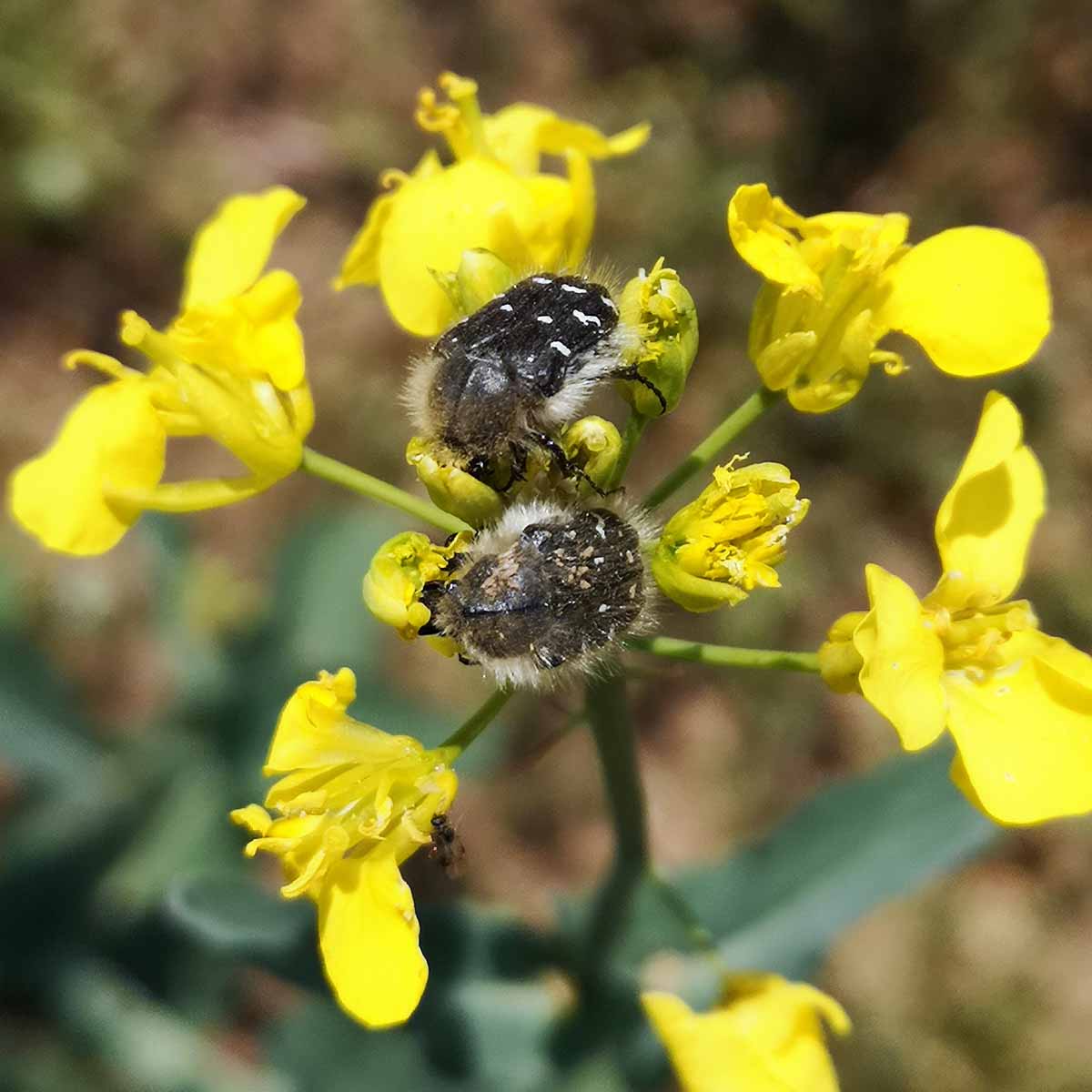 Květy řepky poškozené zlatohlávky