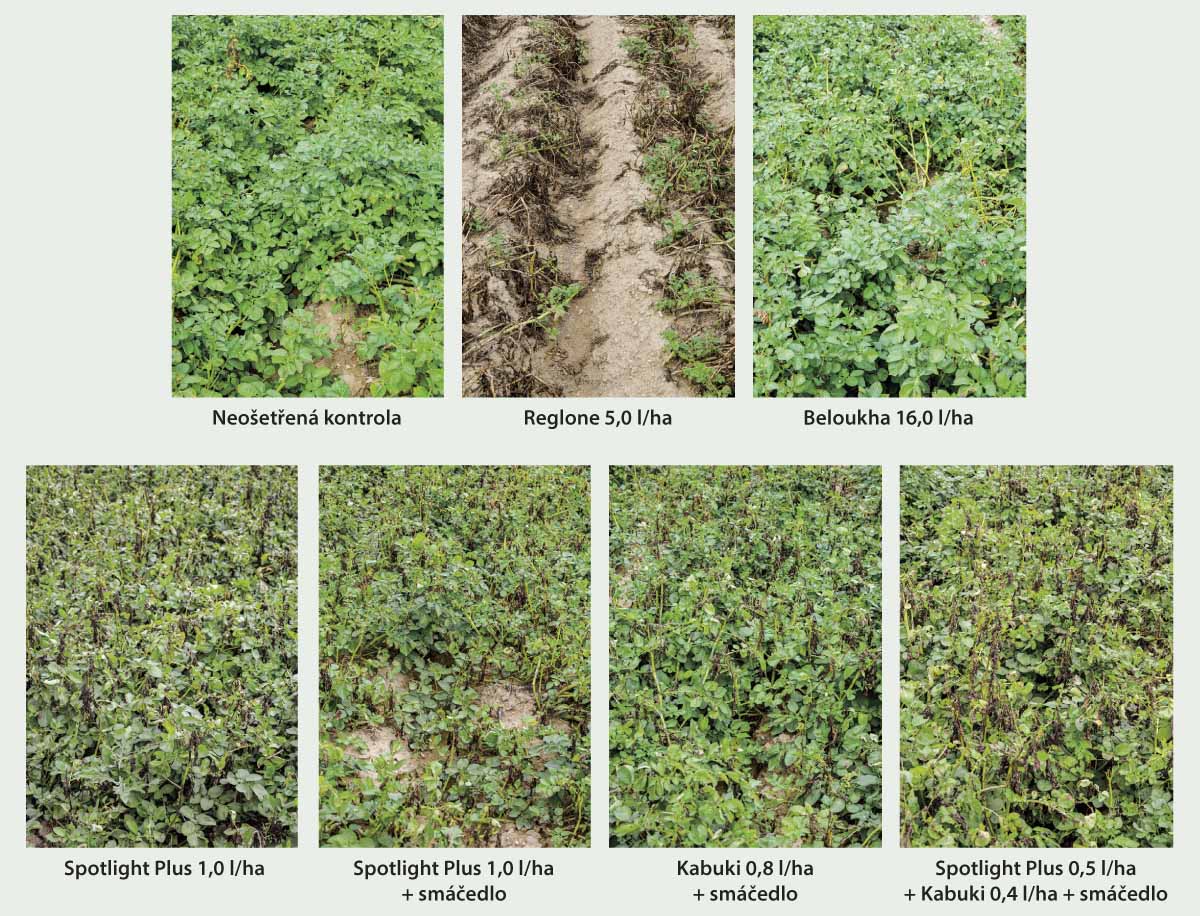 V pokusech prováděných ve Výzkumném ústavu bramborářském Havlíčkův Brod byla již v minulosti porovnávána účinnost přípravků, jejichž registrace skončila (Reglone, Basta 15) a desikantů Kabuki a Spotlight Plus (carfentrazon-ethyl).