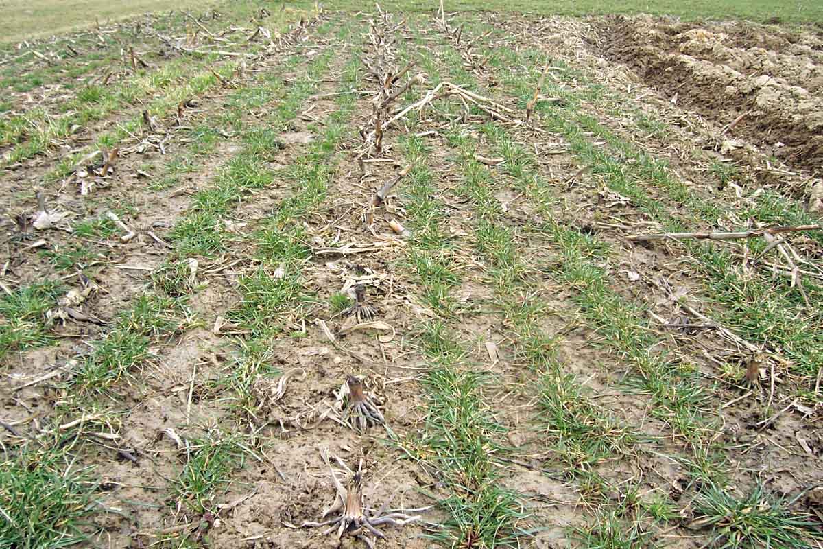 Tráva založená v roce 2017 do kukuřice v Zubří, foceno 23. 3. 2018