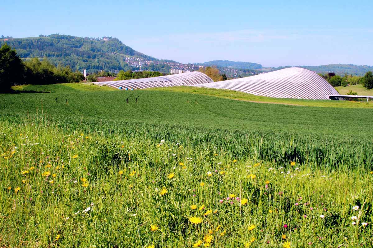 Kromě toho je v okolí Centra Paula Klee ke zhlédnutí mnoho objektů udržitelného zemědělství a k využití v ekologicky orientovaném polním hospodaření. Veřejnost se také může seznámit s vzácně se vyskytujícím a ohroženým druhem tmavých včel (Apis mellifera mellifera). Mohou je pozorovat v průhledných vitrínách v blízkosti velké výstavní haly.