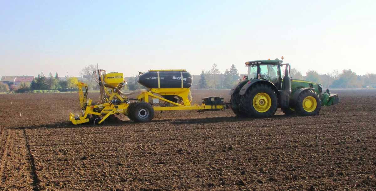 Předmětem projektu je vývoj hloubkového dlátového kypřiče, který umožňuje profilové hnojení, tedy uložení hnojiva do půdy při souběžném hlubokém prokypření půdy (35–40 cm). Při tomto profilovém hnojení je realizováno uložení hnojiva do oblasti budoucího kořenového systému. Ověřovaný hloubkový kypřič je opatřen systémem souběžného výsevu meziplodiny do prostoru budoucího meziřádku cukrové řepy (obr. 1). Hnojivo i osivo meziplodiny je distribuováno z děleného zásobníku s vlastním přesným dávkovačem pod softwarovou kontrolou.