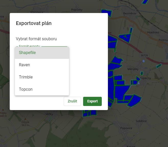 Další unikátní funkcionalitou softwaru AGRI-PLAN je hromadný export dat ve formátech a struktuře již připravené pro přímý import do většiny navigací na trhu. Software AGRI-PLAN umožňuje exportovat data ve všeobecných formátech do navigací Raven, Trimble, Topcon, Case a New Holland. Data lze následně za použití dalších softwarů převést také do navigací Fendt, MF, Valtra, JD a dalších. Již zformovaný plán linií a vytyčené hranice lze do navigací Raven zasílat bezdrátově přímo z kanceláře, aniž by bylo zapotřebí se ke strojům jakkoli dopravovat. I v průběhu prací lze tedy provést aktualizaci či změnu a tu okamžitě zaslat do navigace, která je mnohdy desítky až stovky kilometrů vzdálená.