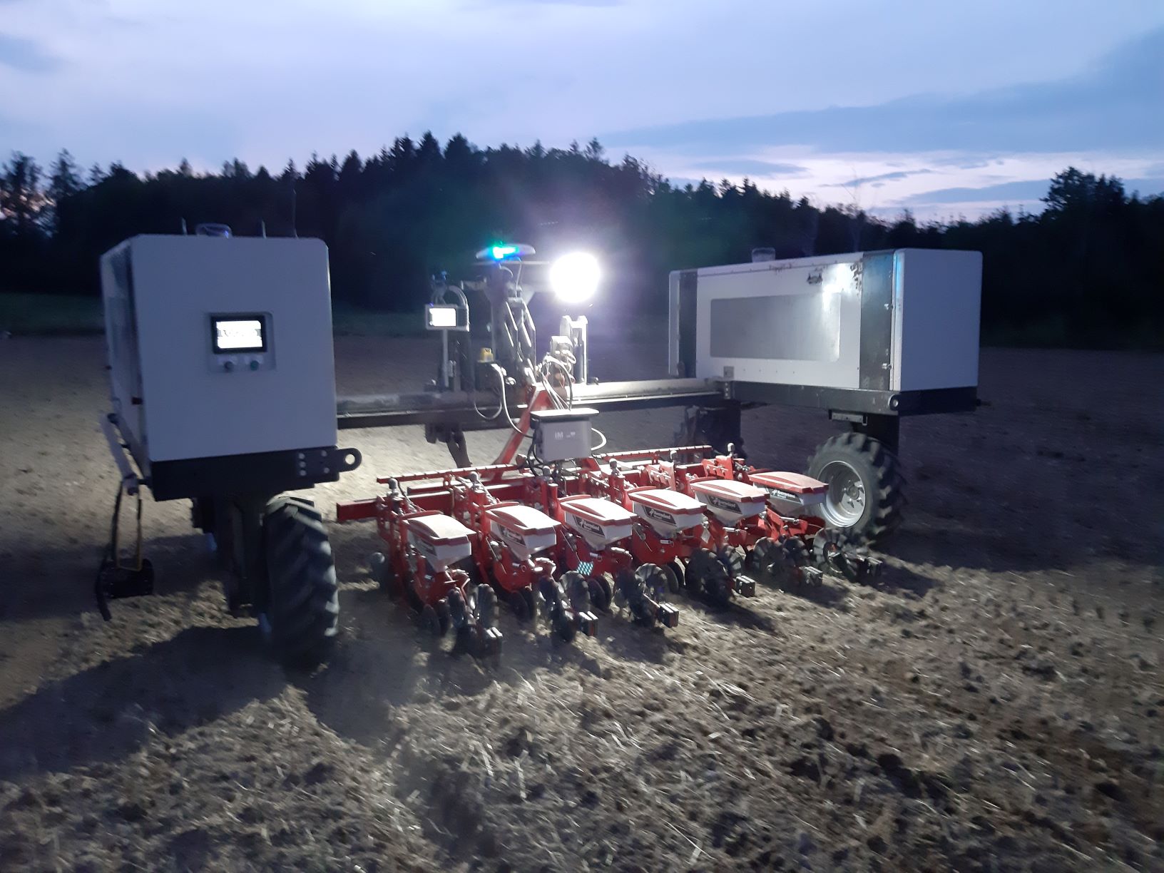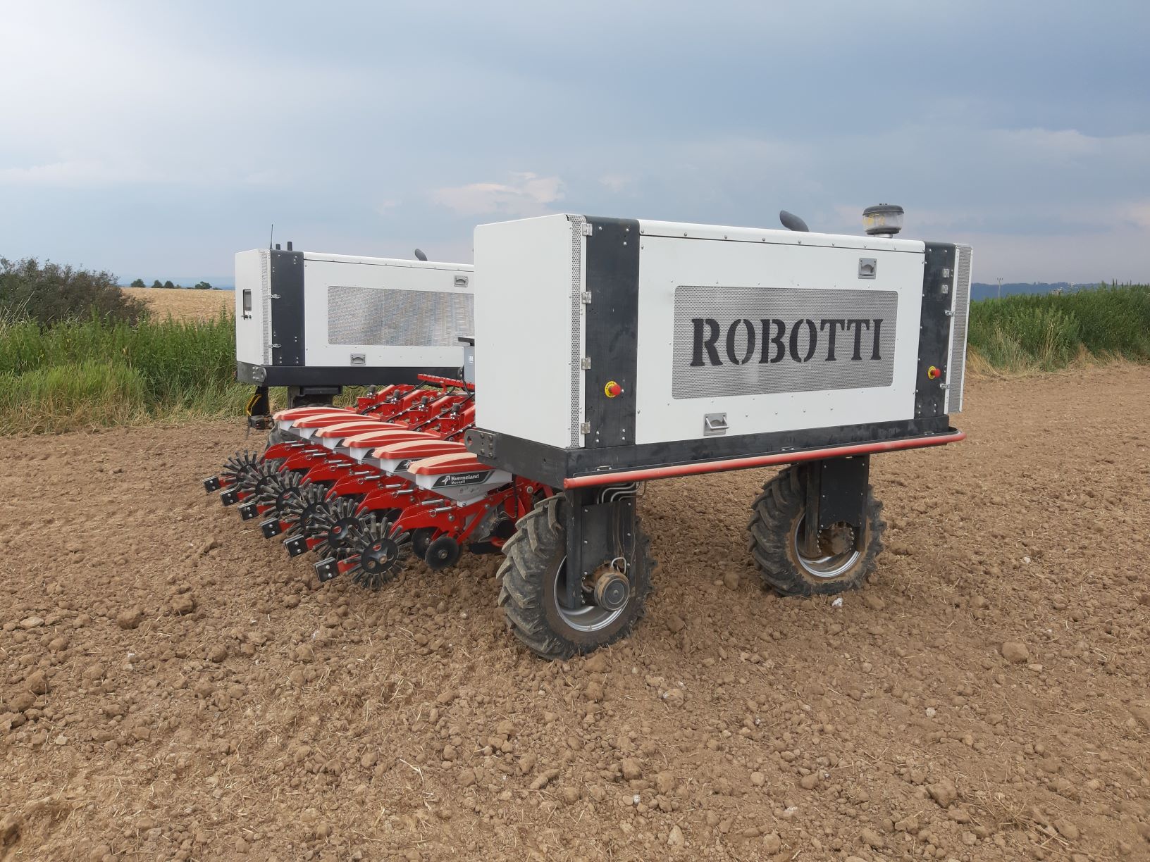 Polní robot Agrointelli Robotti se secím strojem Kverneland Monopill právě dokončil setí řepky na 30 ha poli v Královéhradeckém kraji, čímž po krátké době vytvořil opět nový, minimálně plošný evropský rekord, v robotické zemědělské operaci.