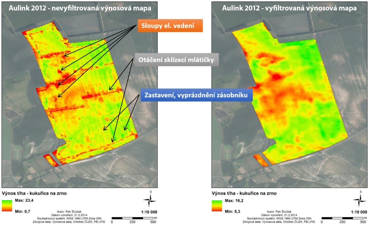 Vývoj sklízecí techniky v současnosti nabízí možnost celoplošného monitorování výnosu sklízené plodiny a jeho záznam do map. Jde o velmi cenné informace pro optimalizaci pěstebních technologií s ohledem na plošné diference dosahovaných výnosů. Před použitím výnosových map je ale nutné záznamy ze sklízecí mlátičky upravit, neboť jsou zkresleny celou řadou vlivů. Je třeba provést odstranění chybových, nespolehlivých a odlehlých hodnot daných chybným záznamem polohy, záběru, objížděním překážek a otáčením apod (mapa 1).