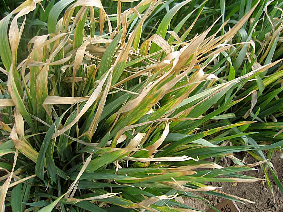 Obr. 1: Poškození listů pšenice jarním mrazem