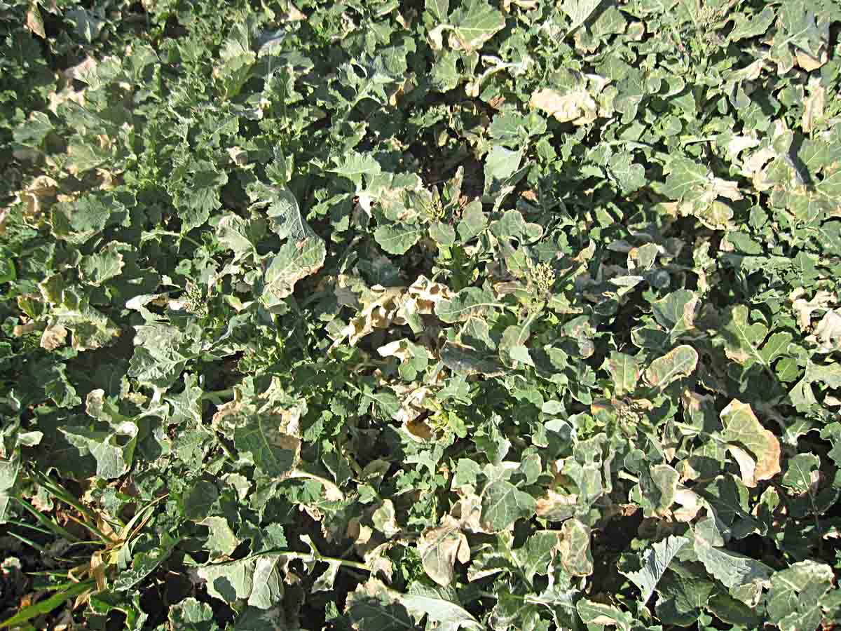 Obr. 12: Poškození listů řepky bezprostředně po dubnových mrazech