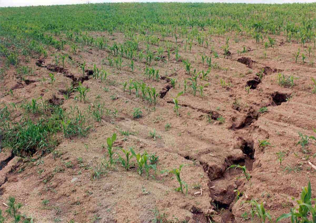 Obr. 1: Při pěstování kukuřice s využíváním konvenčního zpracování půdy může docházet při intenzivních dešťových srážkách k nevratnému poškozování půdy vodní erozí