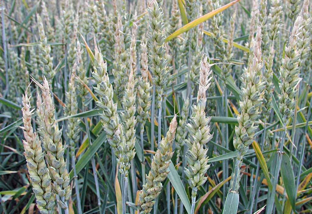 Obr. 2: Zasychání špiček klasů pšenice při působní sucha a horka