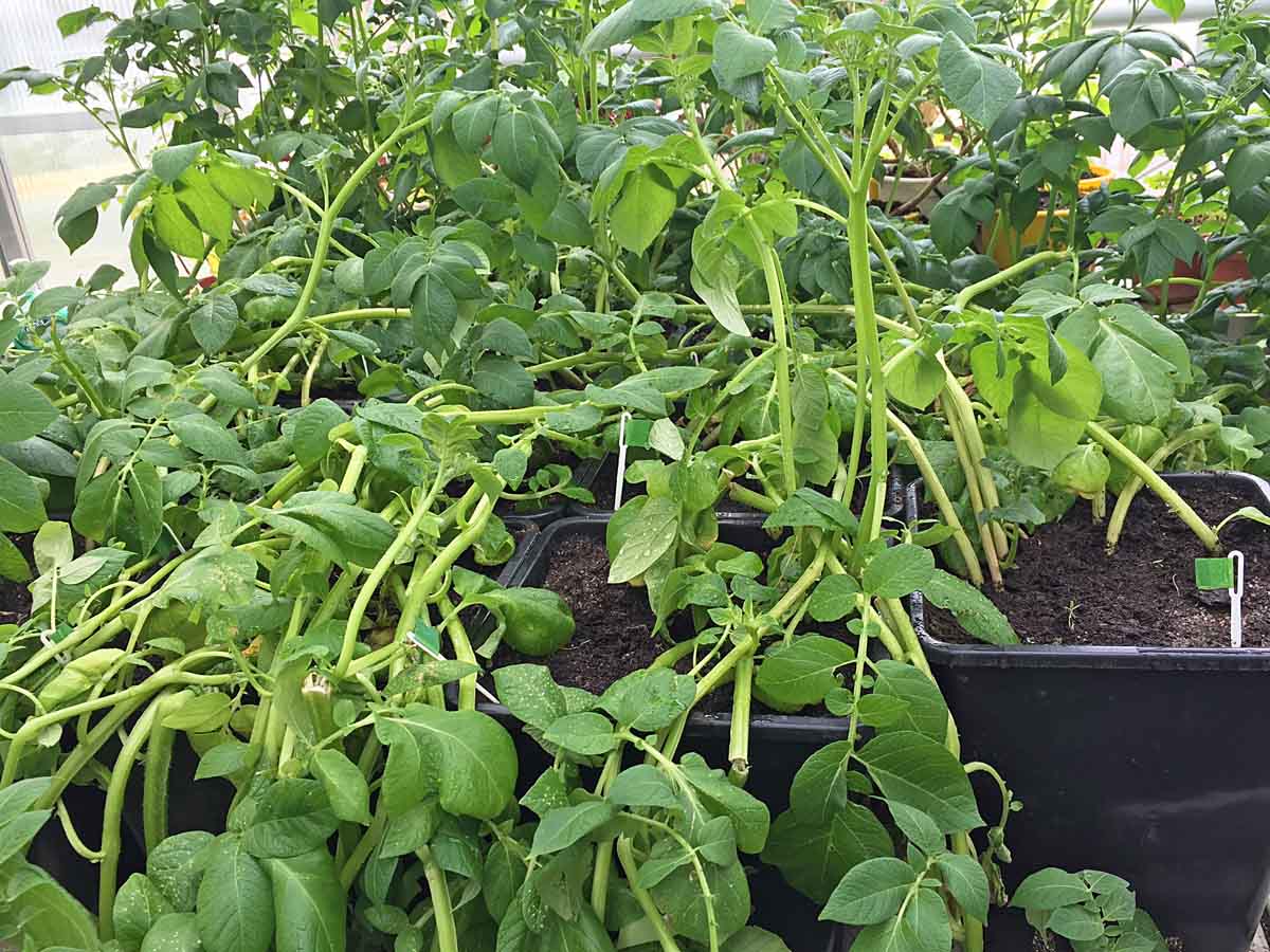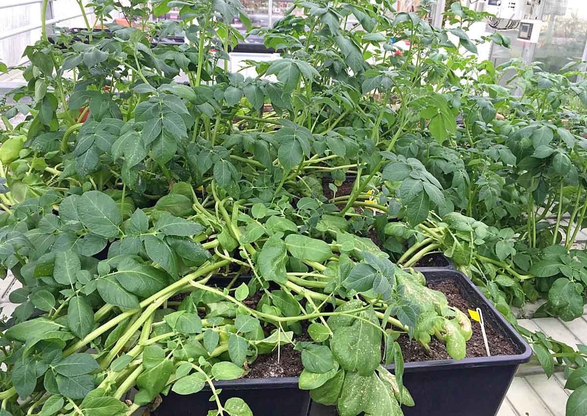 Ve skleníkových podmínkách byl sledován vliv vodního deficitu a hypoxického stresu na relativní obsah vody a vodní potenciál v listech bramboru. Jako pokusný materiál byly použity čtyři odrůdy brambor: Laura, Marabel, Milva a Valfi. Rostliny byly pěstovány v nádobách o objemu 5 litrů, v substrátu Hawita za přirozeného světelného režimu (13/11 hod.) a teplotního režimu 22 °C/17 °C. Před zahájením experimentu byly do nádoby přidány 2 g hnojiva NPK (8-24-24). Schéma pokusu zahrnovalo tři varianty: kontrola (závlaha 450 ml/nádobu), hypoxie (trvalé zamokření) a vodní deficit (navození postupným vysycháním substrátu). Rostliny všech experimentálních variant byly dvakrát hnojeny 3% roztokem NPK (8-24-24) ve 450 ml zálivky v době kvetení (26. den pokusu) a v době tvorby hlíz (53. den pokusu).