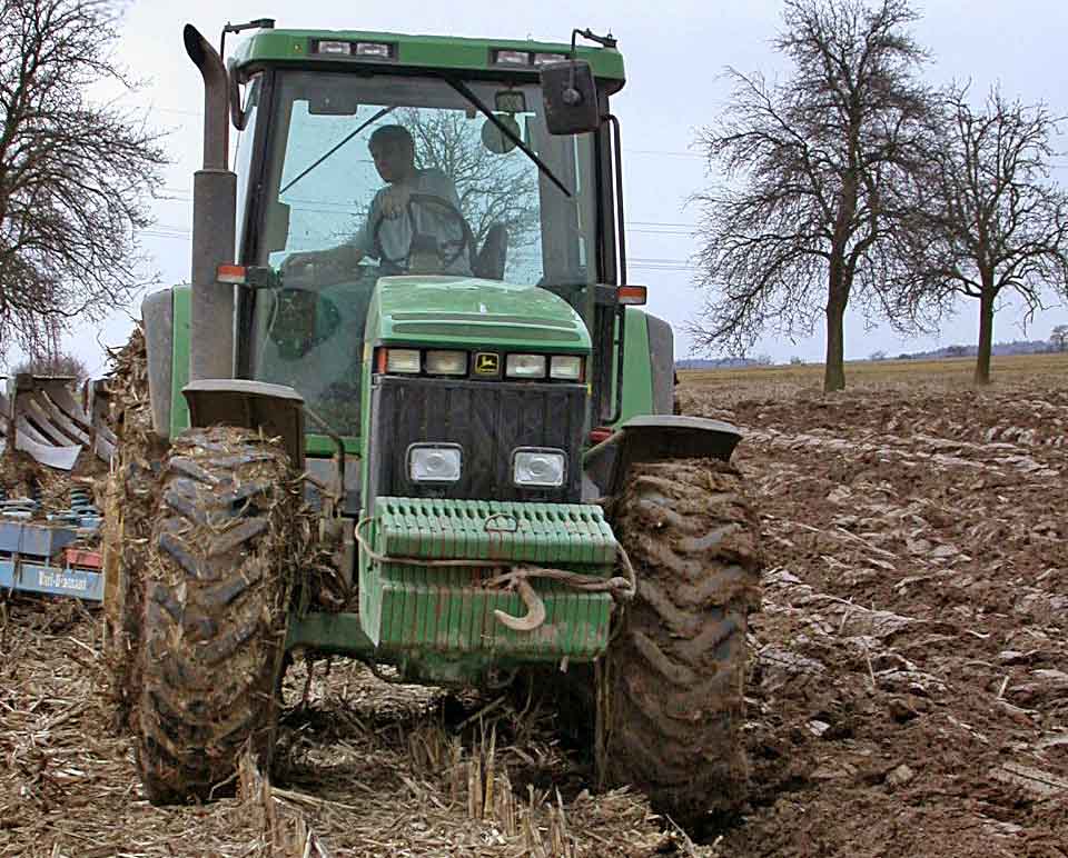 Obr. 12: Při orbě radličnými pluhy jede traktor jednou stranou v brázdě