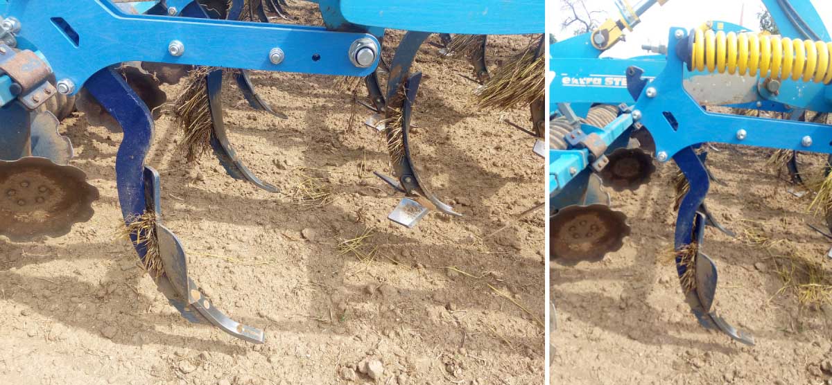 Obr. 9: Dlátování lze provést i pomocí klasických dlátových kypřičů (vlevo) a kypřičů s poloparabolickými slupicemi (vpravo)