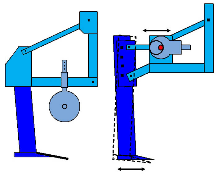 V současné době se pro cílené nakypření podorničí spíše využívá dlátových kypřičů nebo kypřičů umožňujících nastavení rozdílné hloubky jednotlivých typů pracovních nástrojů či jejich řad na rámu stroje (obr. 5).