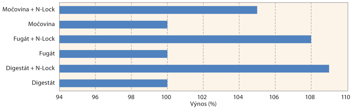 Optimální využití dusíkatých hnojiv je významným aspektem efektivního pěstování polních plodin. Rozhodující zde je správně stanovit potřebnou dávku dusíku, hnojení načasovat tak aby byl aplikovaný dusík co nejlépe využit. K tomu Vám v této sezoně může pomoci i přípravek N-Lock inhibující přeměnu amonného dusíku na nitrátový. Tím zůstává dusík přístupný rostlinám v kořenové zóně po delší dobu a maximalizuje se výnosový potenciál pěstovaných plodin.