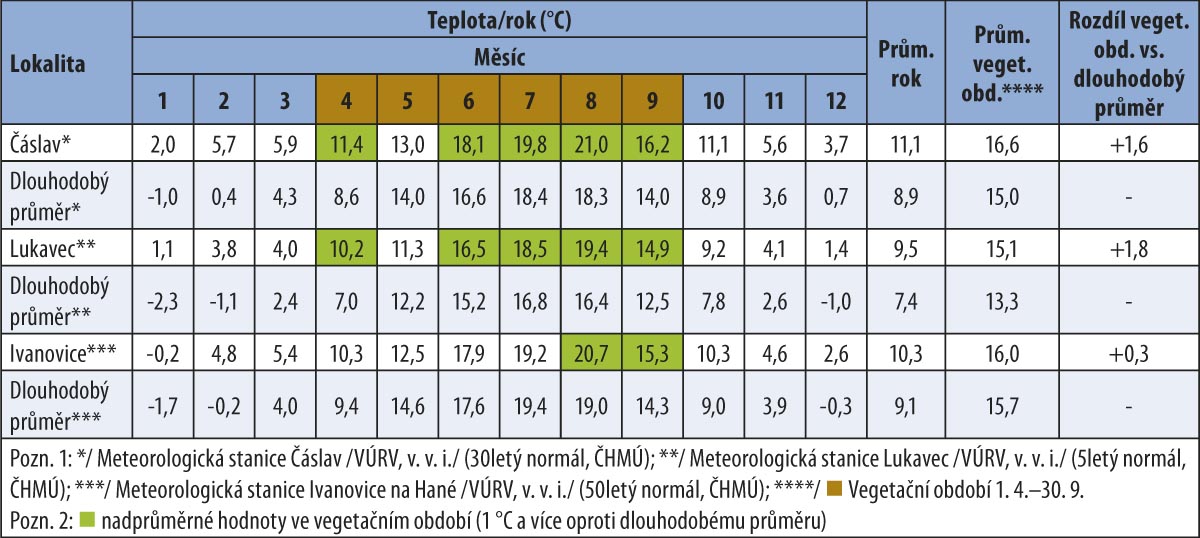 Tab. 3: Základní klimatické podmínky stanovišť (průměrné měsíční teploty) v roce 2020