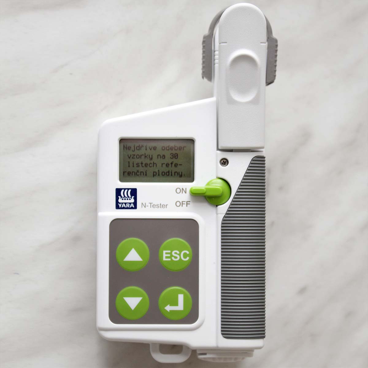 Přístroj Yara N tester, kterým byl zjišťován obsah chlorofylu v listech