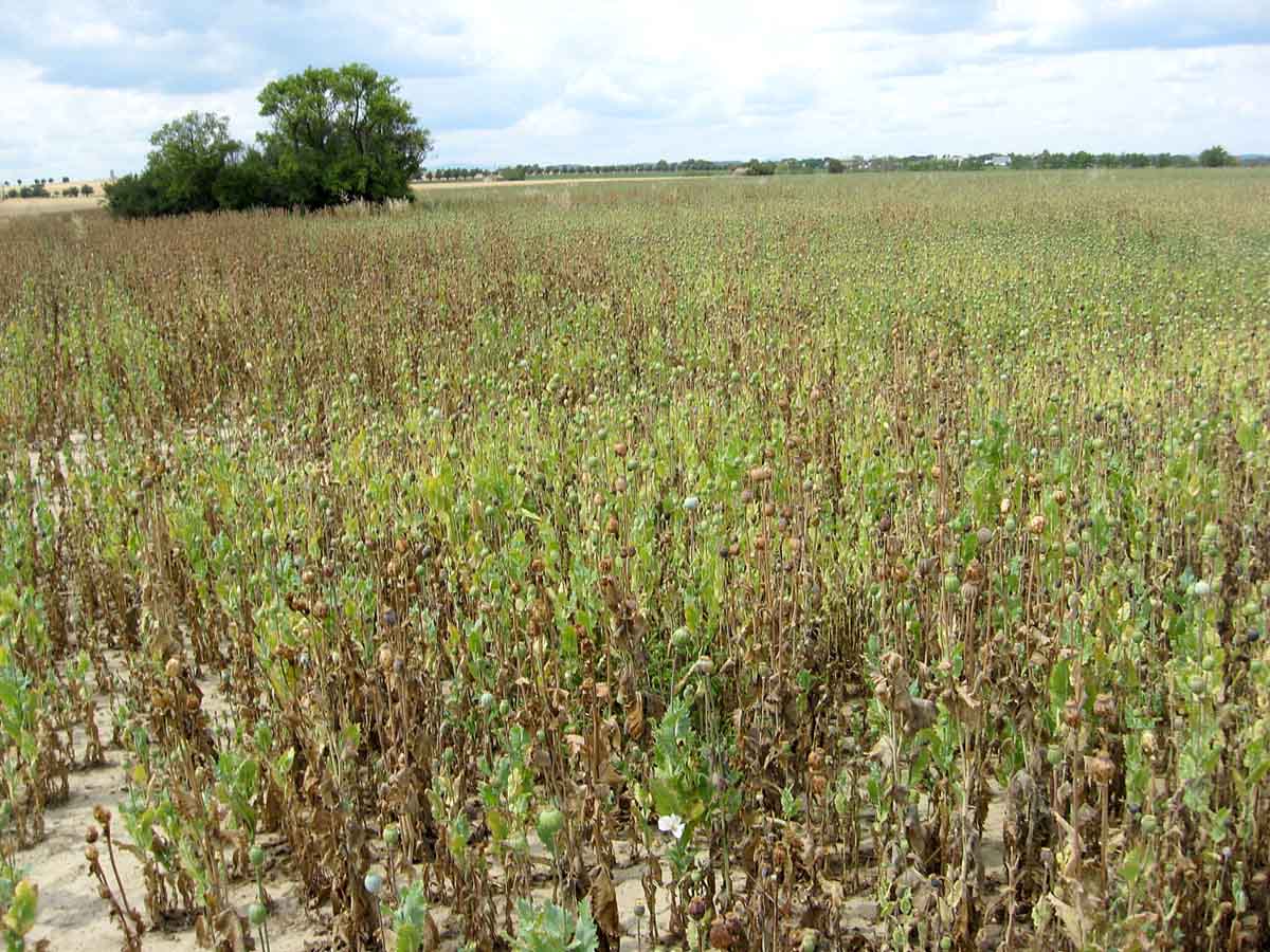 Přesetý mák 23. 7. 2019, jiné porosty byly v té době už skoro zralé a o polovinu vyšší