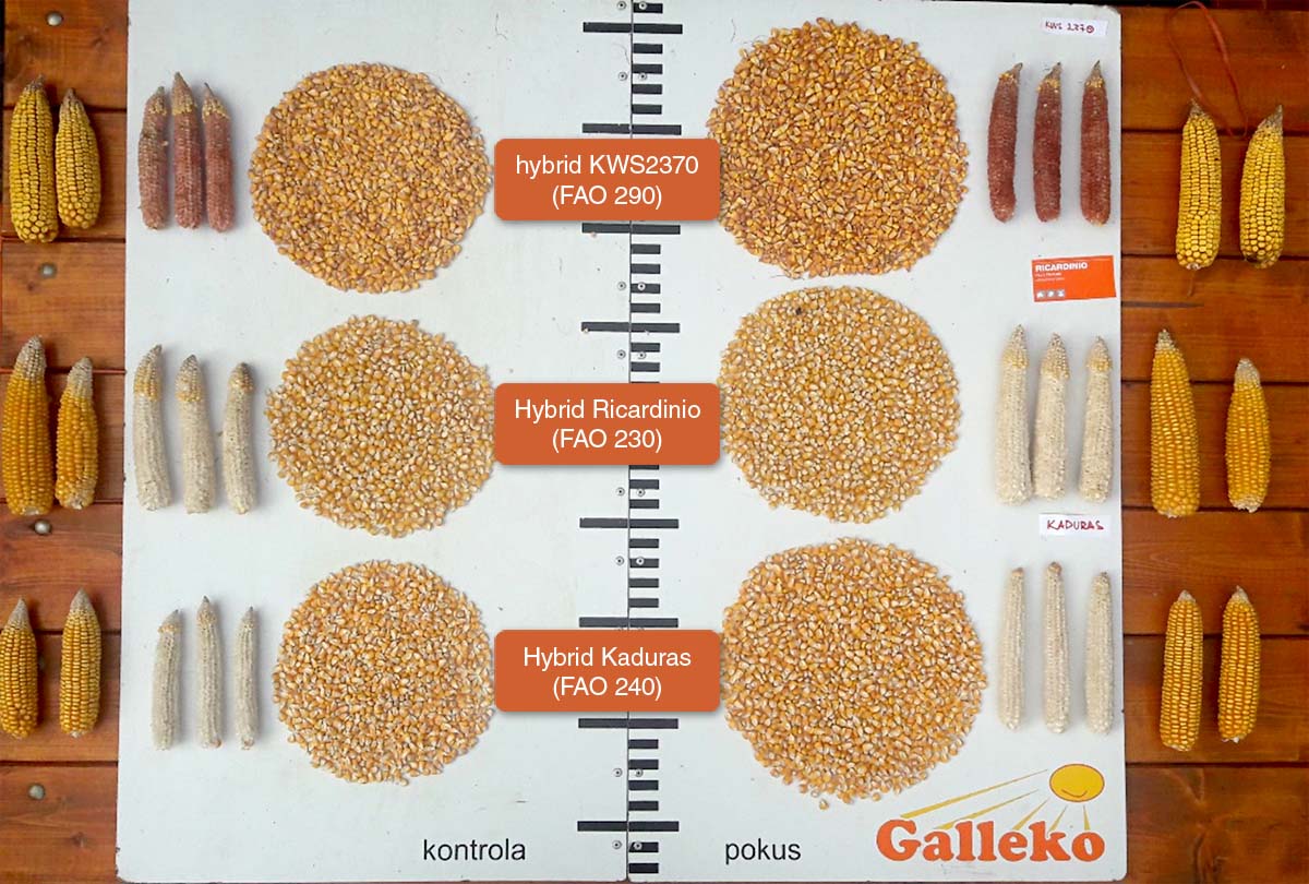 V tomto čísle sa však pozrieme na prínos prípravkov Galleko v kukurici, no nie optikou výskumných ústavou. V tomto roku sme totiž oslovili tri firmy, ktoré sa zaoberajú výrobou a predajom osív kukurice. V spolupráci s nimi sme aplikovali prípravky Galleko na ich jednotlivé odrody a hybridy kukuríc. Cieľom týchto pokusov bolo preukázať opodstatnenosť aplikácie a prínos prípravkov Galleko pri pestovaní kukurice v rôznych podmienkach (rozdielne typy odrôd a hybridov, lokalita, typ pôdy, množstvo zrážok atď.).