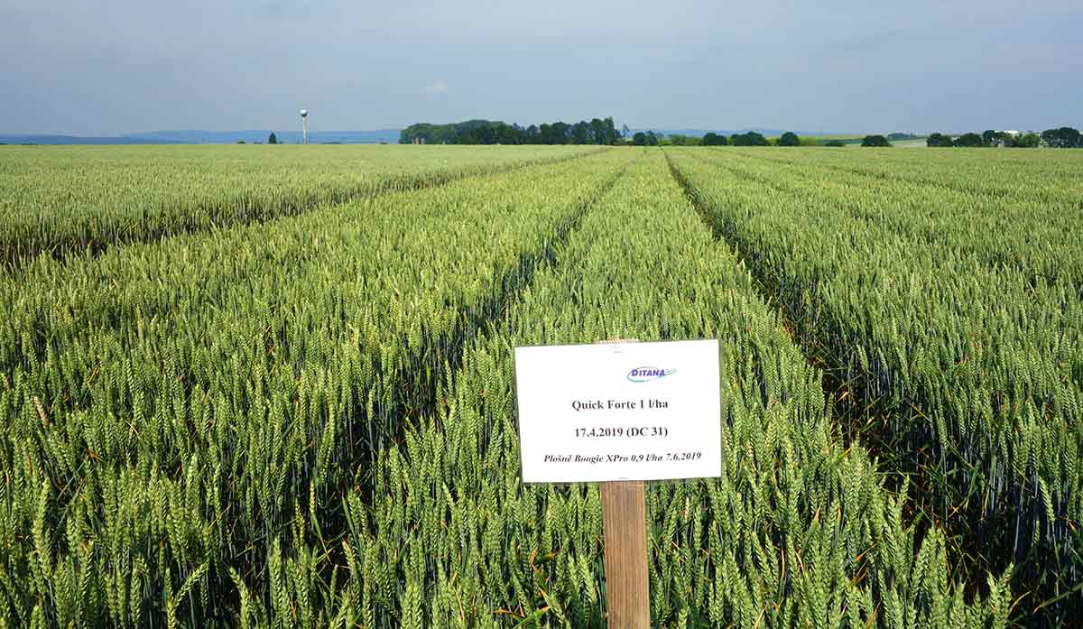 Obr. 4: Pokusy s přípravkem Quick Humin Forte v ozimé pšenici (odrůda RGT Reform, Ditana 2019)