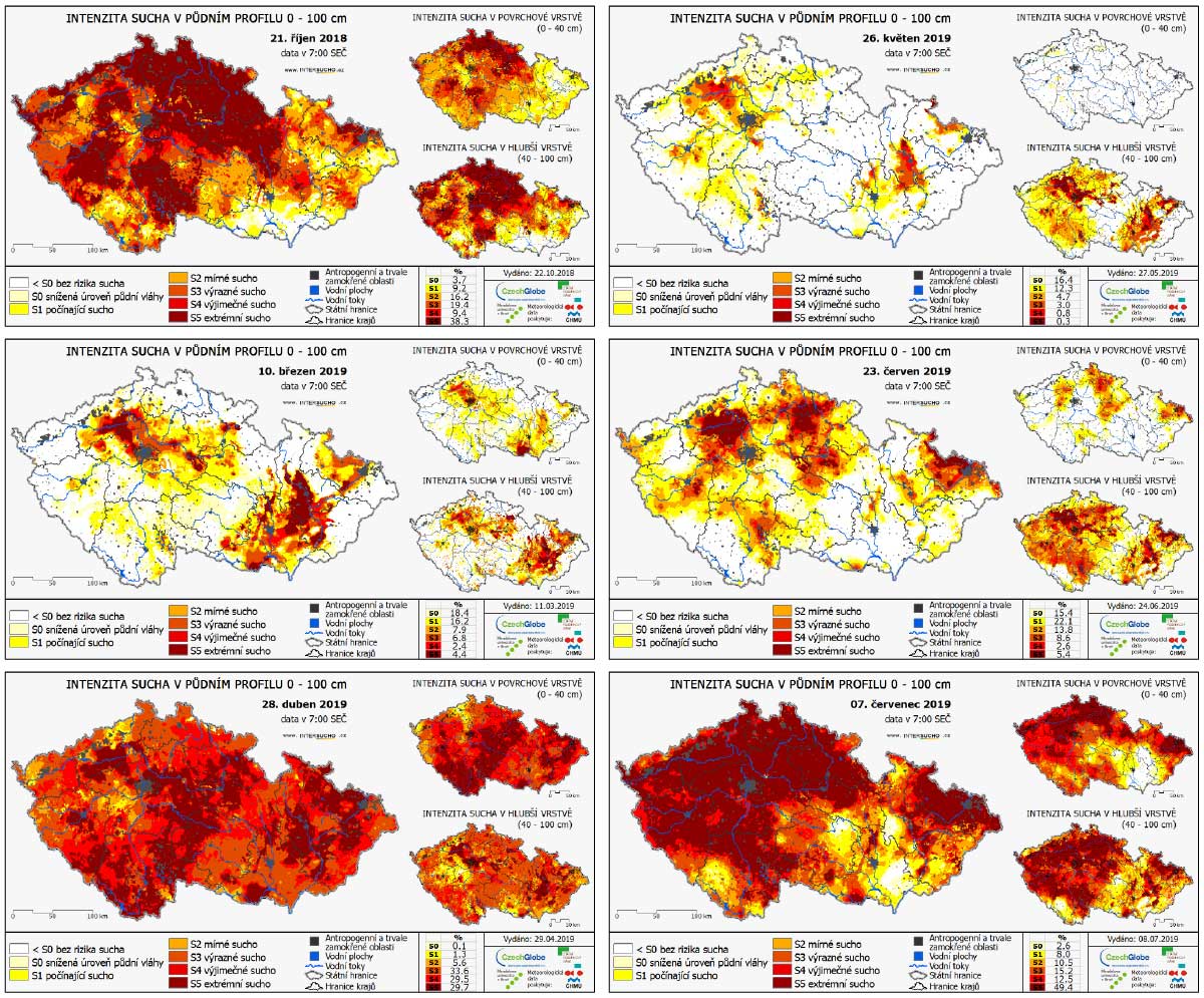 Podle prognóz předních klimatologů musíme stále častěji počítat s extrémními projevy počasí. Nejčastějším agrometeoextrémem je sucho (prof. Trnka). Uvedené konstatování je názorně vidět např. ze srovnání zásob vody v půdním profilu během března až července 2019 (www.intersucho.cz) z map, kde názorně vidíme extrémní kolísání podmínek a kalamitní deficit vody v půdním profilu v některých vegetačně důležitých obdobích.